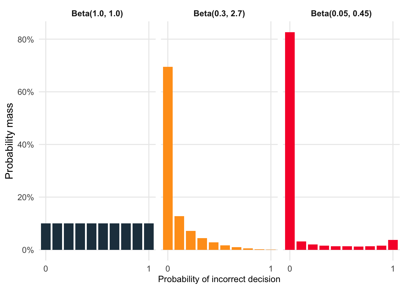 Under that assumption, we can model the KMI Panel’s voting split as a beta-binomial distribution, where the underlying probability of the decision being incorrect follows a beta distribution, and then our five expert panelists are treated as independent Bernoulli draws and may vote correct or incorrect based on that underlying probability.