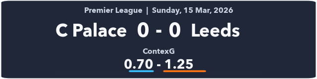 You would expect Palace to dominate the second half against ten men but they only managed 9 touches in the box and 0.4 xG after the break. Leeds are only three points from safety but they still have home games to come against Wolves and Burnley. They have performed like a mid-table Premier League team this season and should be fine.