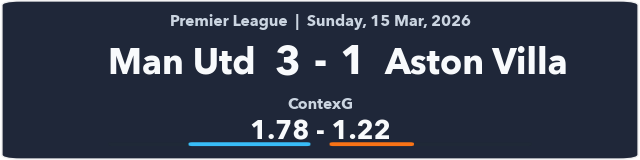 What has changed for Villa? Honestly, not much. A few injuries in midfield haven’t helped but performances don’t look drastically different. In this game they had 31 touches in the box to United’s 21, and the Fotmob xG was pretty even (1.07 - 1.02). That’s a reasonable effort at Old Trafford.
